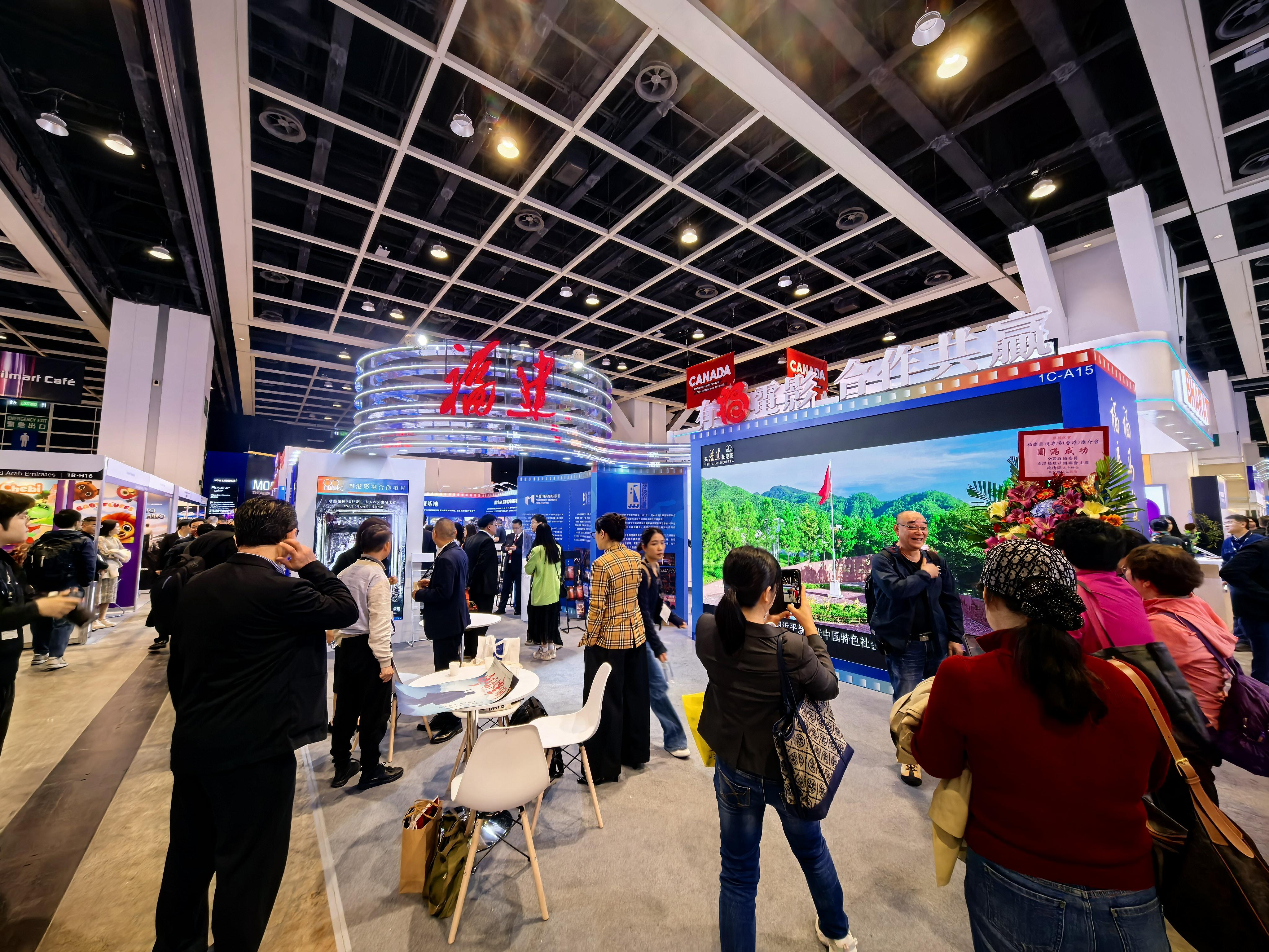 福建展馆。福建省电影局供图 作为第30届香港国际影视展参展方,福建展馆同期亮相。展馆以沉浸式展示与互动洽谈相结合的方式,设置“拍在福建”资源导览区、“节展品牌墙”核心区、“有福电影 合作共赢”洽谈区、2026重点推进项目发布区及影视基地资源库五大特色展区,全方位呈现福建影视产业的资源优势、节展平台、合作成果与未来潜力,受到广泛关注。