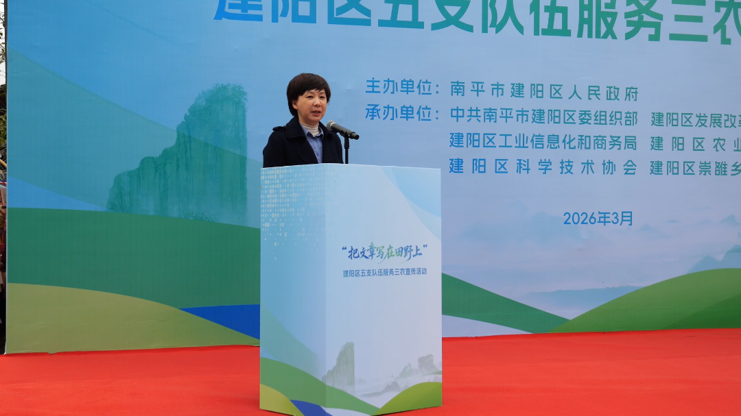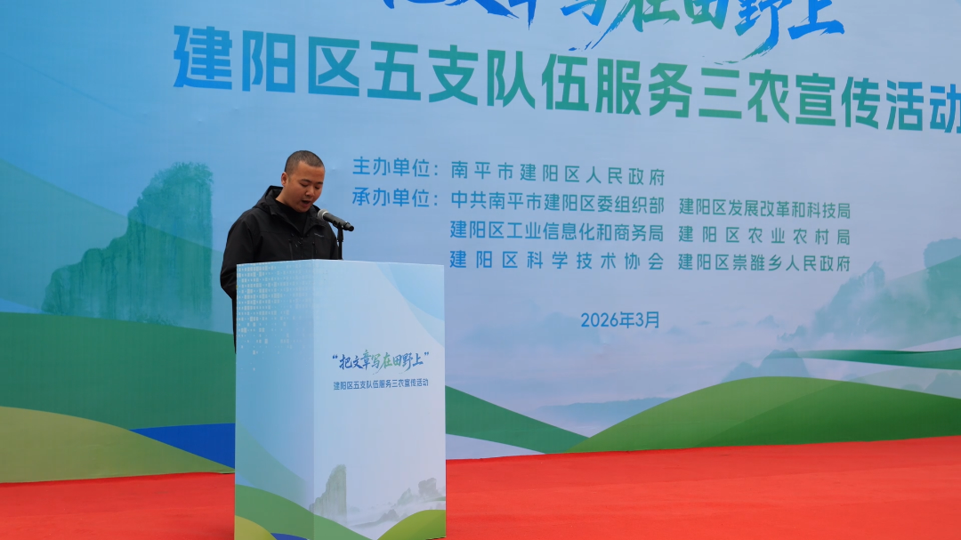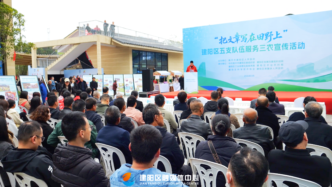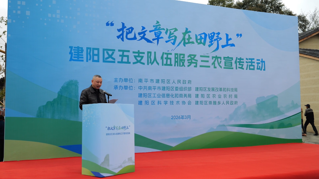 3月21日,由建阳区政府主办,区委组织部、区发科局、区农业农村局等多部门联合承办的五支队伍服务“三农”宣传活动在建阳桔柚科技小院举办。区委书记谢启龙,区委副书记、区长王冲,区人大常委会主任郑立新,区政协主席鄢毅等四套班子在家领导,区委组织部、区发科局、科协、工信商务局、农业农村局、崇雒乡主要领导,以及五支队伍代表和农民代表参加。