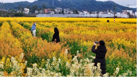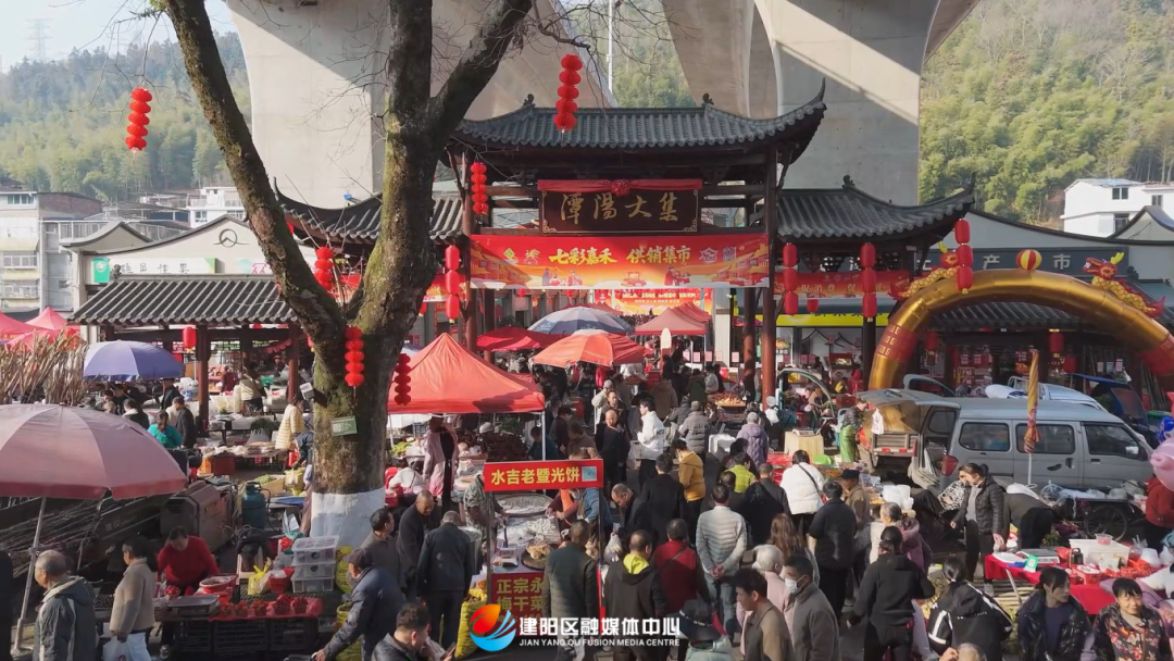 游客在油菜花海拍照打卡 (丁健伟 摄) “这里的油菜花很漂亮,我们是特意做了攻略过来打卡的。”来自市区的游客陈小宇和朋友们举着手机不停拍照。 这片油菜花田是麻沙镇“稻田花海”农文旅品牌的核心载体,从一旁观景平台上俯瞰,整个油菜花田的地势起伏与色彩层次尽收眼底。这片“金色”花海不仅为种植户带来实实在在的收益,也正成为麻沙镇农文旅融合的新引擎。 “田境”的精彩,远不止这一片花海。马伏3D油菜花、扁溪莓好时光、追源杨梅时节、书坊金色百香果、崇雒柚见安然、后畲爱莲福记、回潭三白论道……这七处农园丰景串起了建阳四季的田园风光。 围绕“七彩嘉禾”特色品牌,建阳区正积极探索“生态农文旅”模式,发展后备箱经济业态,结合二十四节气,推出农产品节庆、趣味赛事等活动,打造“田园综合体”,开辟休闲农业旅游线路。 食境 五味融合,寻味人间烟火 潭阳大集每到开集,便人声鼎沸,烟火气十足。水吉扁肉、麻沙豆干、溪源膨糕……琳琅满目的本土美食摊位前围满了尝鲜的游客,空气中弥漫着诱人的香气。这里是建阳“食境”的核心地标,汇聚了建阳各乡镇的特色美食与土特产品,既是一个可逛可吃的市集,也是一个可品可购的展示窗口。