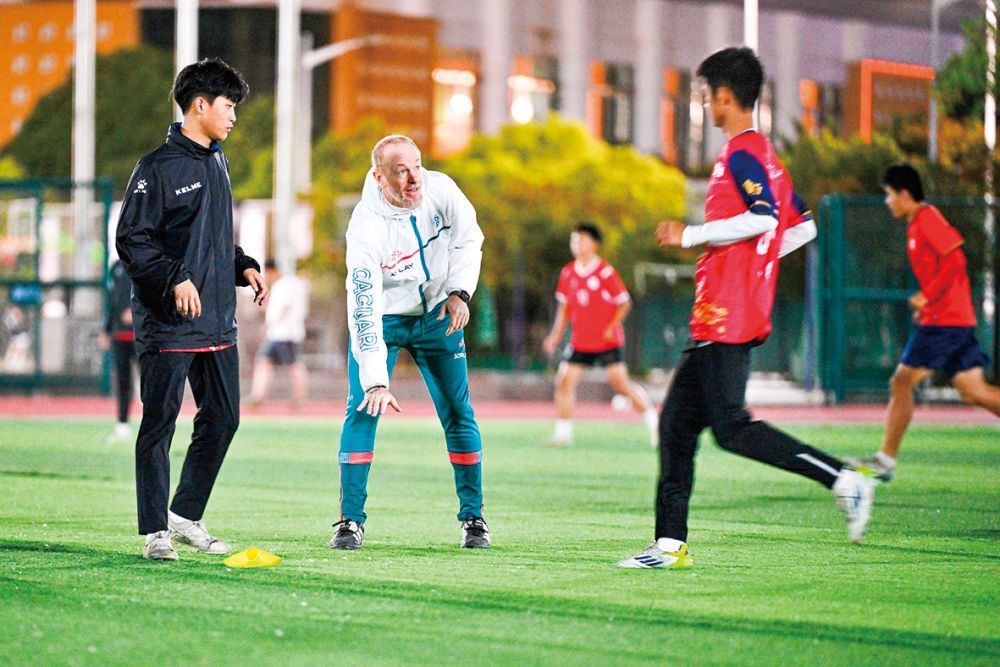 2025年10月29日,教练马科斯·卡普里奥洛(中)在指导霞浦一中高中男子足球队训练。新华社记者 姜克红摄 马科斯·卡普里奥洛和阿莱·塔里斯是首批常驻霞浦开展青训的意大利教练,两人共同参与指导霞浦8支中小学足球队的训练,同时也分别执掌霞浦第一中学男、女子足球队的教学。 为了适应中国孩子们的学习节奏,两位“洋教头”白天开展训练复盘、战术分析,与本地教练交流研讨青训方法,晚间则利用学生课余时间开展实战训练。这种全天候、沉浸式的教学模式,让霞浦的小将们受益匪浅,技术水平得到了明显提升。 带训的时光里,霞浦孩子们对足球的渴望和训练时的认真态度都给两位意大利教练留下了深刻印象。“你能看到孩子们每天都在进步。”卡普里奥洛说。 孩子们持续不断的进步很快交上了第一份亮眼“成绩单”。在2025年夏天举行的福建省青少年校园足球联赛暨中学生足球锦标赛中,霞浦第一中学女子足球队一路过关斩将,夺得U18组别冠军。 塔里斯回忆,夺冠瞬间,孩子们都激动地流下泪水,有很多家长、老师以及霞浦市民赶到比赛现场为姑娘们加油欢呼。“那个场景令人动容,是我到中国后经历的最难忘的时刻。”他说。