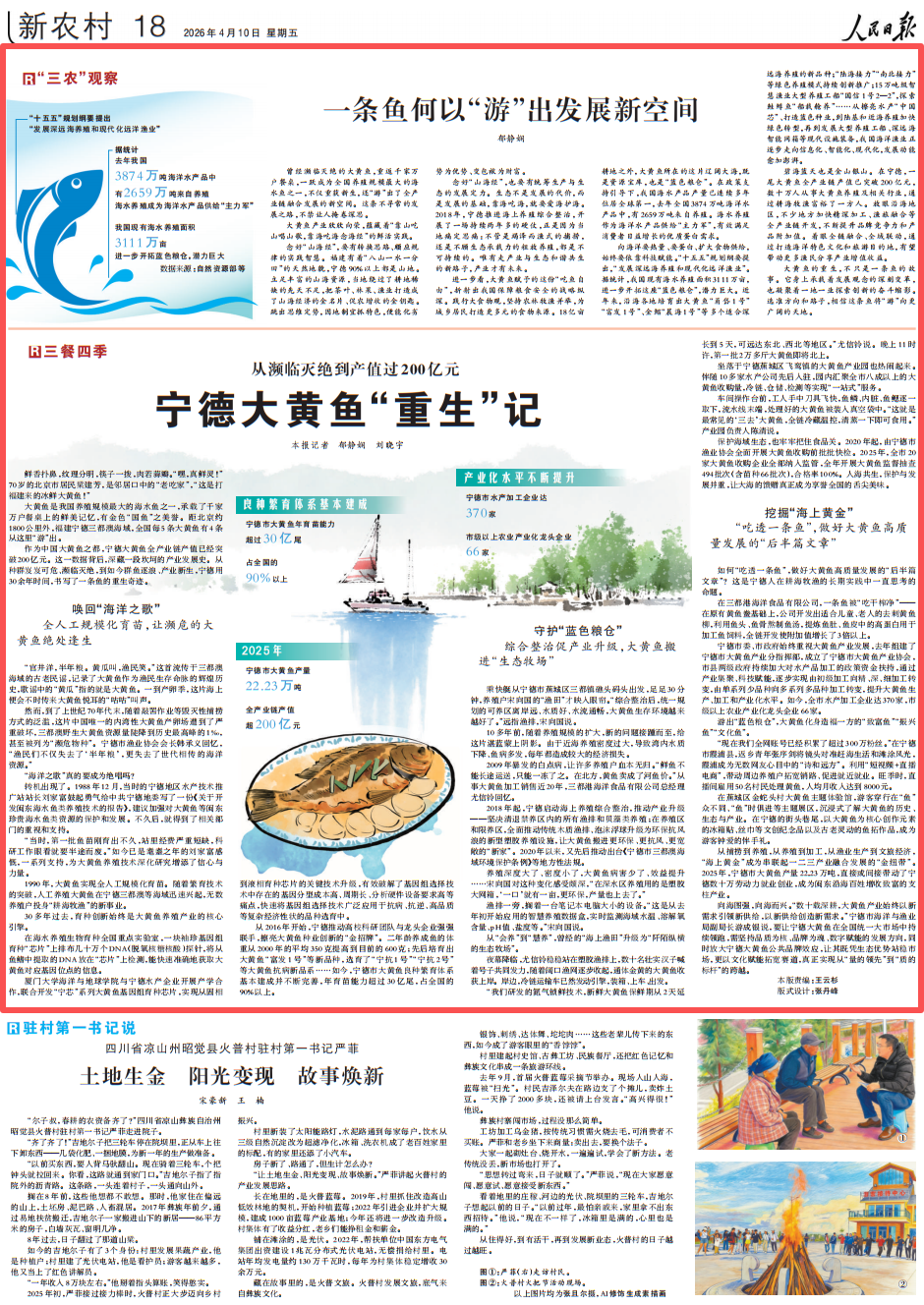 《人民日报》4月10日第18版 从濒临灭绝到产值过200亿元 宁德大黄鱼“重生”记 人民日报记者 郁静娴 刘晓宇