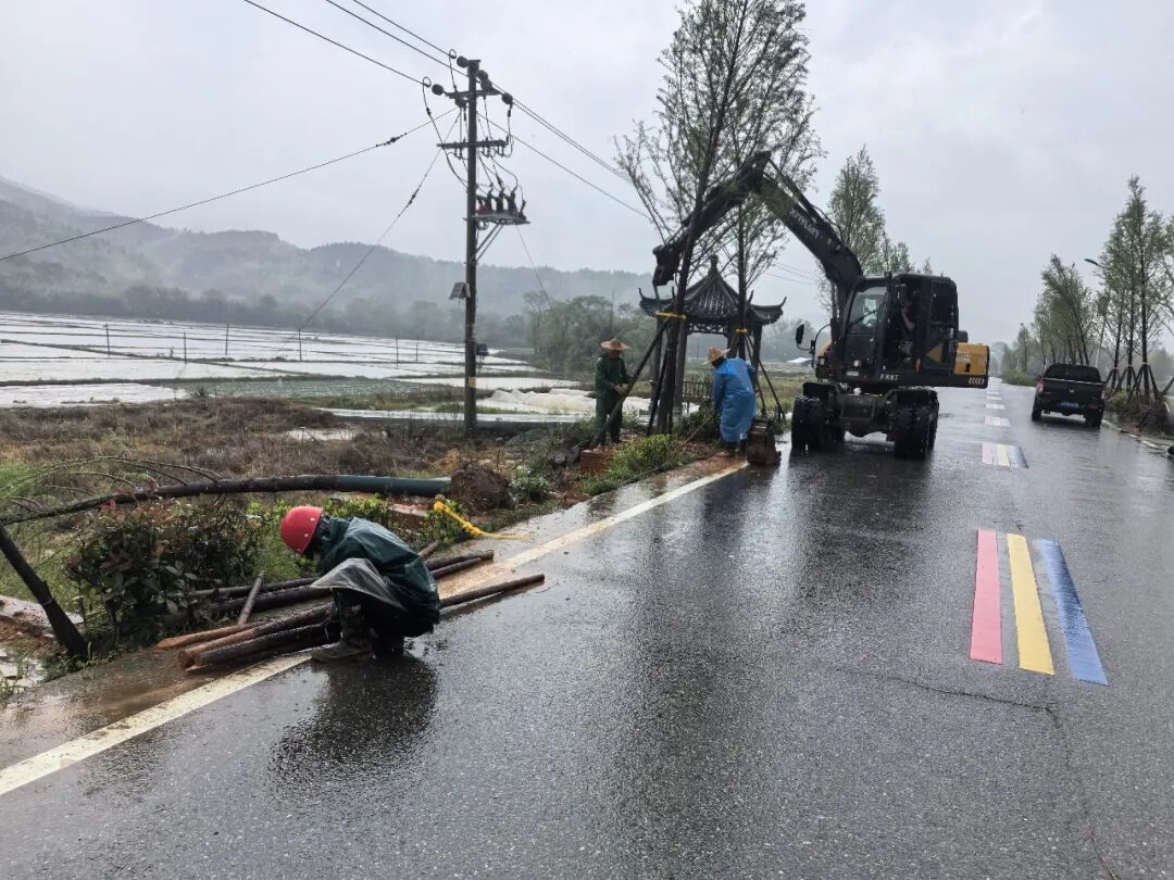 险情发生后,建阳区将口镇党委政府高度重视,第一时间启动应急响应,迅速组织镇、村党员干部赶赴现场处置。现场工作人员在险情路段周边设置警示标志、拉起警戒区域,有序疏导过往车辆绕行,避免发生交通拥堵和安全事故。同时,及时对接林业集团东风园林公司,协调专业人员、调配清障设备赶赴现场,对倒伏树木进行切割、清运作业。