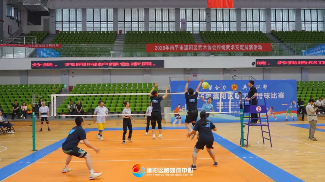 4月18日,由建阳区总工会、区文化体育和旅游局联合主办的“工聚合力 共建环带”职工气排球比赛在区体育馆开赛,本次比赛共有30支队伍参赛,设机关单位组和企事业单位组。