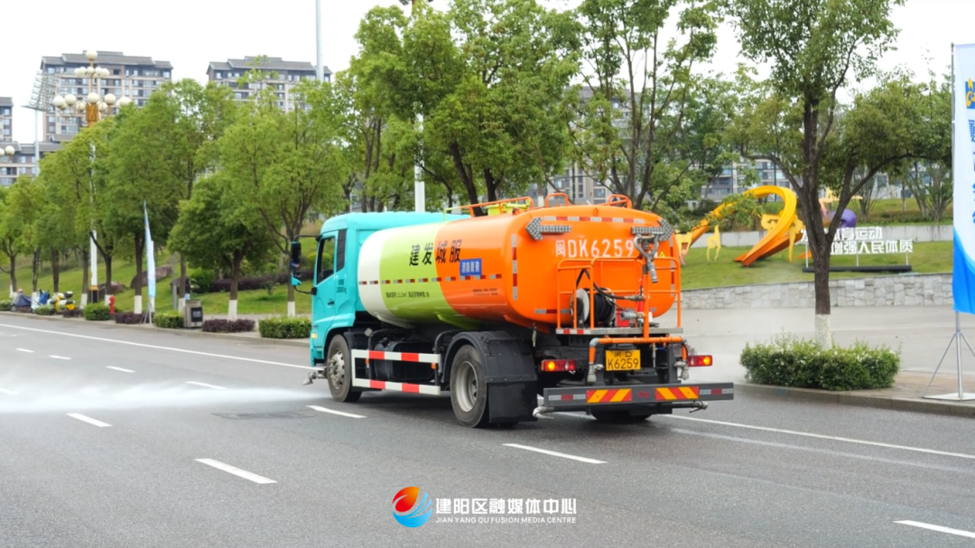 建阳区城市管理和综合执法局环境卫生服务中心副主任谢邵红:“我们安排了一辆大型的洗扫车和洒水车,每日进行两次的清洗跟冲洗作业,同时在体育中心周边,安排了7个环卫工人,做定时定点作业。在比赛期间,我们会另外安排20人左右的保洁队伍,加强巡回保洁,保障这个周边的卫生环境。”