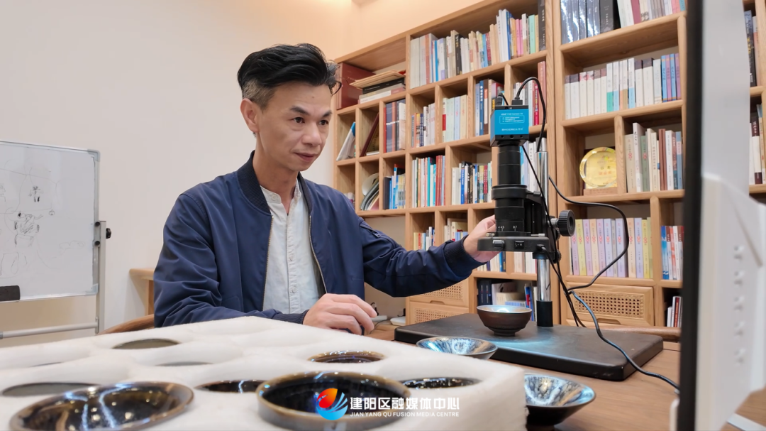 1977年出生的蔡龙,自幼生长在建盏文化浓厚的建阳,红土与烧制作坊在他心中种下热爱。大学时他选择陶瓷设计与工艺专业,系统钻研技艺;毕业后拜吴立主大师为师,全身心投身建盏行业。 蔡龙:“我从小就听着建盏的故事长大,对这门手艺有感情。毕业后,赶上了建盏的技艺慢慢复兴,我就想把它传承好,做下去,不负这份热情。”