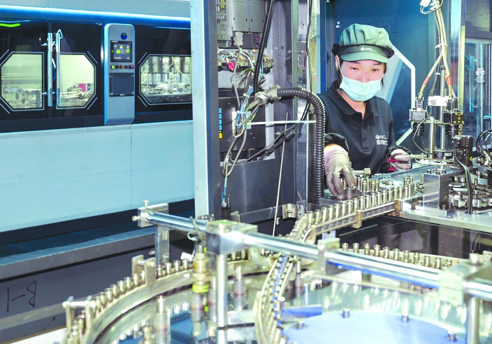 南平时代实业集团有限公司工人在小微电池智能制造生产线上作业